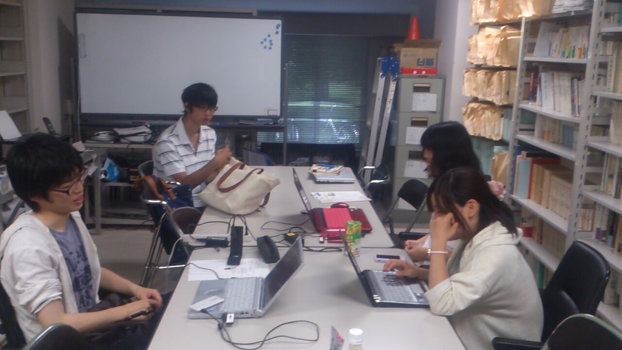 ●本棚● 上田先生の研究資料や東京書籍や教育出版の小学校・中学校の教科書など、 生徒が自由に借りることができ、レジュメ発表などの資料に使うものが置かれています。 どれも難しい本ばかりです。 |