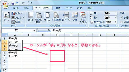 1.移動またはコピーをしたい範囲を,ドラッグして選択する。 選択した範囲の外枠をクリックして,移動したい位置にカーソルを移動する。