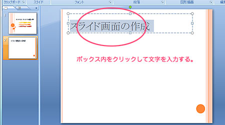 - スライド内をクリックすると,新しいテキストボックスが追加される。